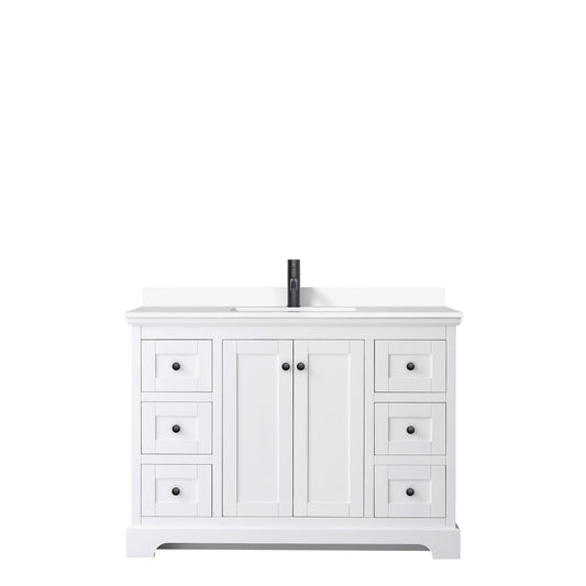 Avery 48" Single Vanity in White, Carrara Cultured Marble Top, Black Trim