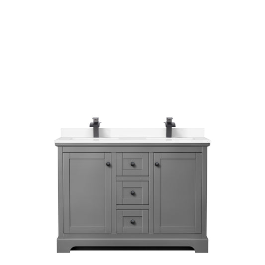 Avery 48" Double Vanity in Dark Gray, White Cultured Marble Top, Black Trim