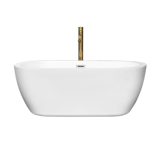 Soho 60" Freestanding Bathtub in White, Chrome Trim, Faucet in Brushed Gold