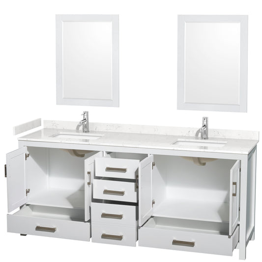 Sheffield 80" Double Vanity in White, Top, Square Sinks, 24" Mirrors