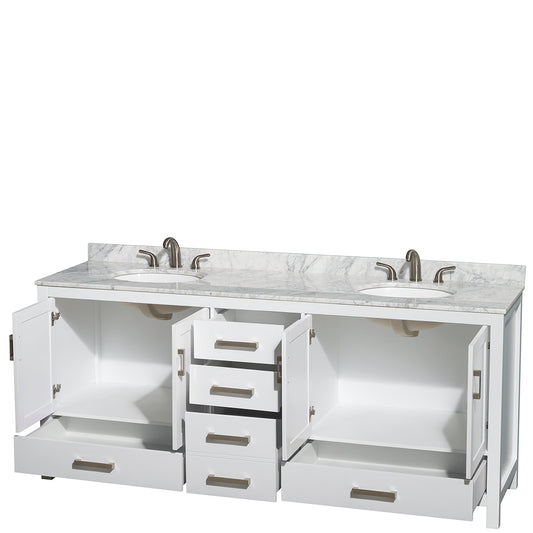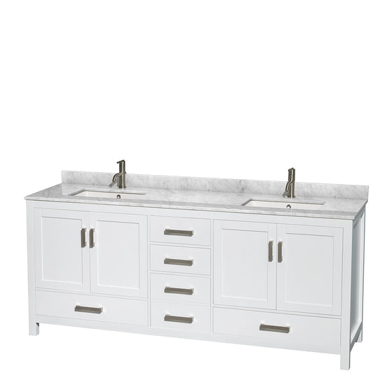 Sheffield 80" Double Vanity in White, Carrara Marble Top, Square No Mirror
