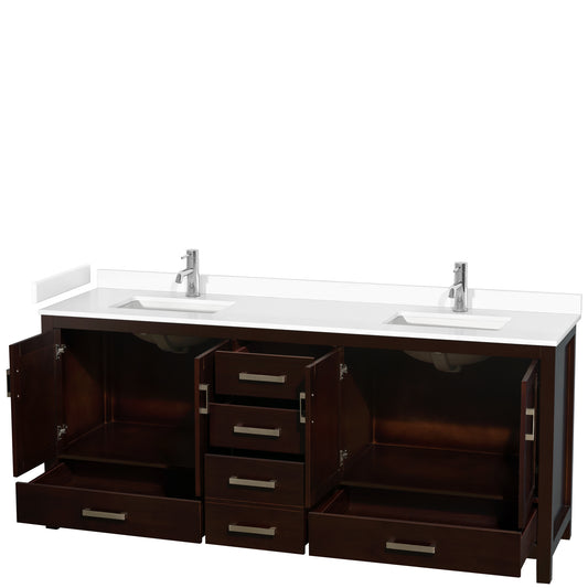 Sheffield 80" Double Vanity in Espresso, White Marble Top, Square No Mirror