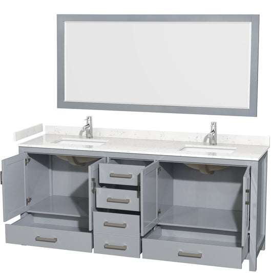 Sheffield 80" Double Vanity in Gray, Top, Square Sinks, 70" Mirror