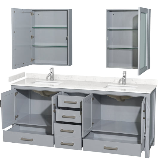 Sheffield 80" Double Vanity in Gray, Top, Square Sinks, Medicine Cabinets