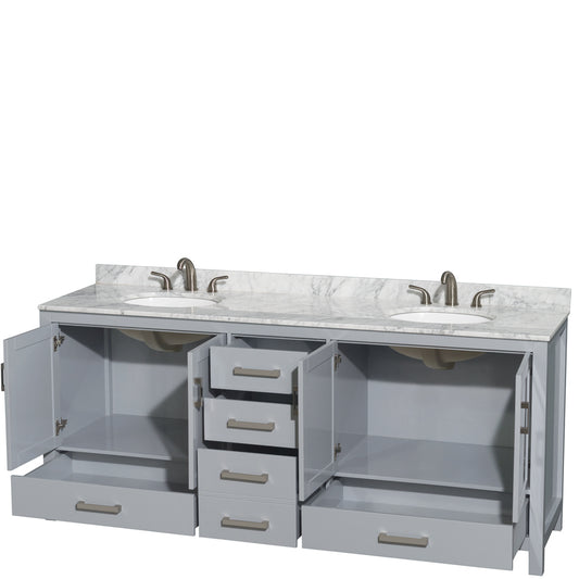 Sheffield 80" Double Vanity in Gray, Carrara Marble Top, Square No Mirror