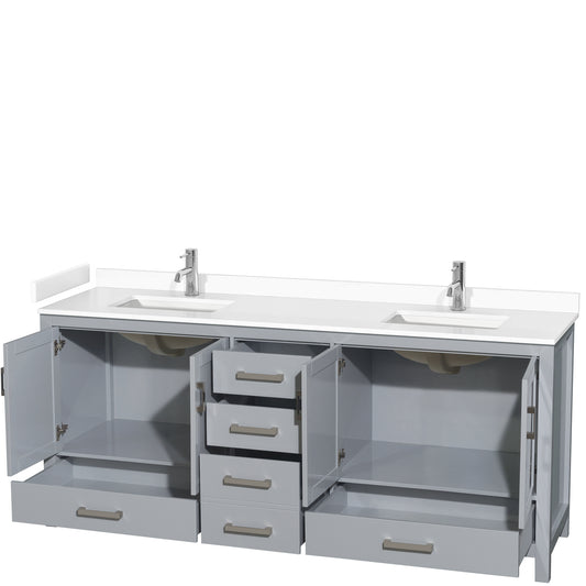 Sheffield 80" Double Vanity in Gray, White Cultured Marble Top, Square No Mirror