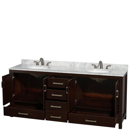 Sheffield 80" Double Vanity in Espresso, Carrara Marble Top, Square No Mirror