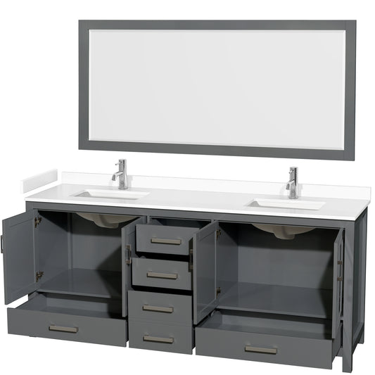 Sheffield 80" Double Vanity in Dark Gray, Top, Square Sinks, 70" Mirror