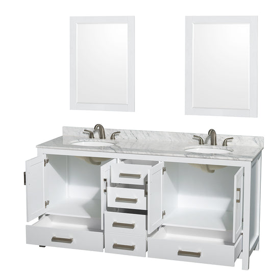 Sheffield 72" Double Vanity in White, Top, Oval Sinks, 24" Mirrors
