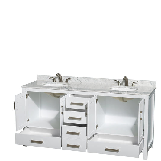 Sheffield 72" Double Vanity in White, White Marble Top, Square No Mirror