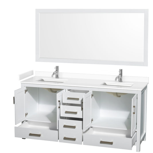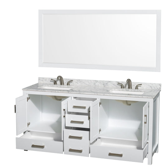 Sheffield 72" Double Vanity in White, Top, Undermount 3-Hole Square, 70" Mirror