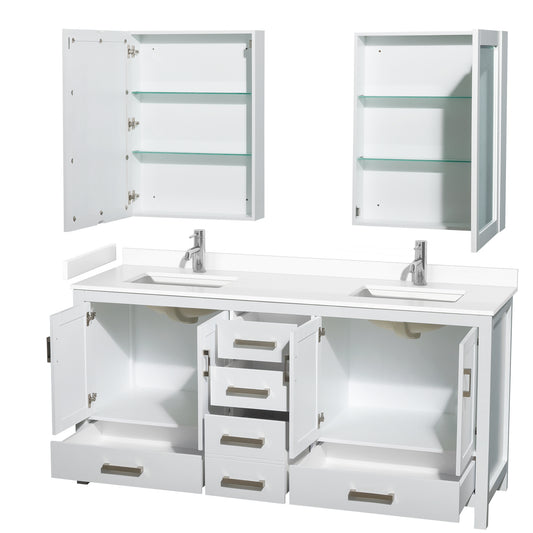 Sheffield 72" Double Vanity in White, top, Square Sinks, Medicine Cabinets