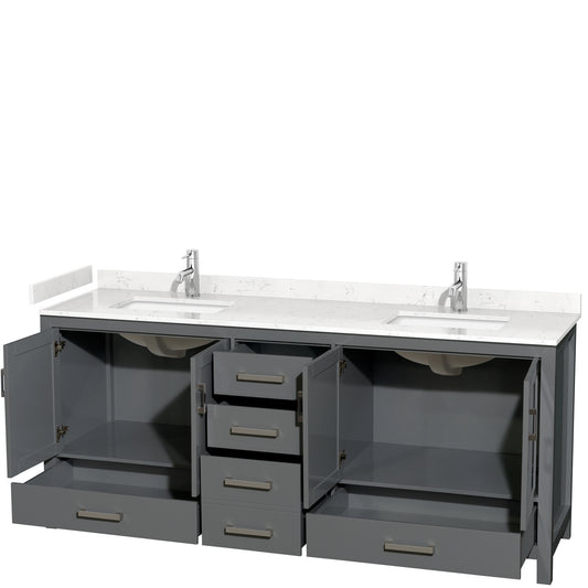 Sheffield 80" Double Vanity in Dark Gray, Carrara Marble Top, Square No Mirror