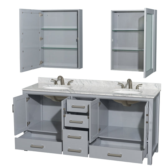 Sheffield 72" Double Vanity in Gray, Top, Oval Sinks, Medicine Cabinets