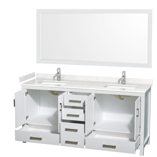 Sheffield 72" Double Vanity in White, Carrara Marble Top, Square 70" Mirror