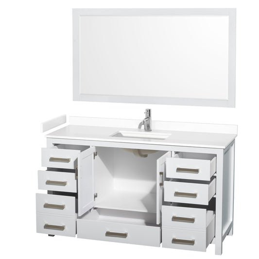 Sheffield 60" Single Vanity in White, White Marble Top, Square 58" Mirror