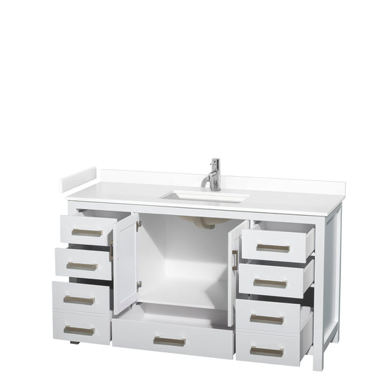 Sheffield 60" Single Vanity in White, Top, Square Sink, No Mirror