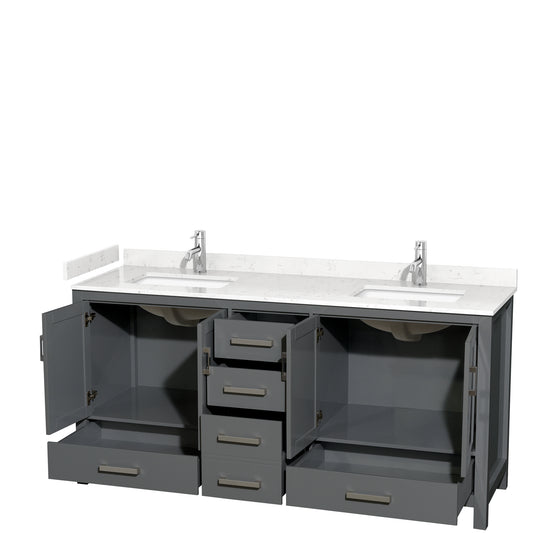 Sheffield 72" Double Vanity in Dark Gray, Carrara Marble Top, Square No Mirror