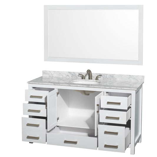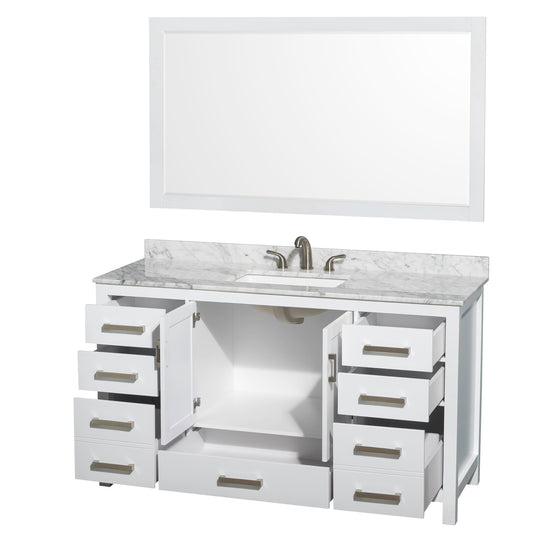 Sheffield 60" Single Vanity in White, Top, Undermount 3-Hole Sink, 58" Mirror