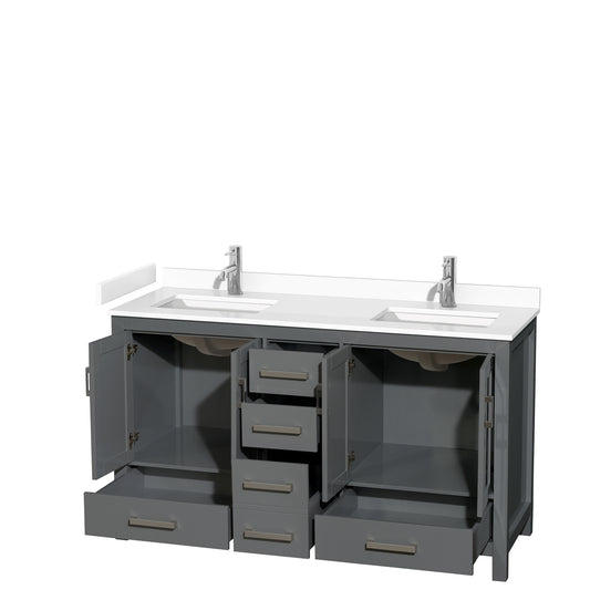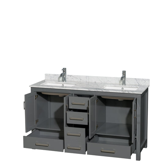 Sheffield 60" Double Vanity in Dark Gray, White Marble Top, Square No Mirror