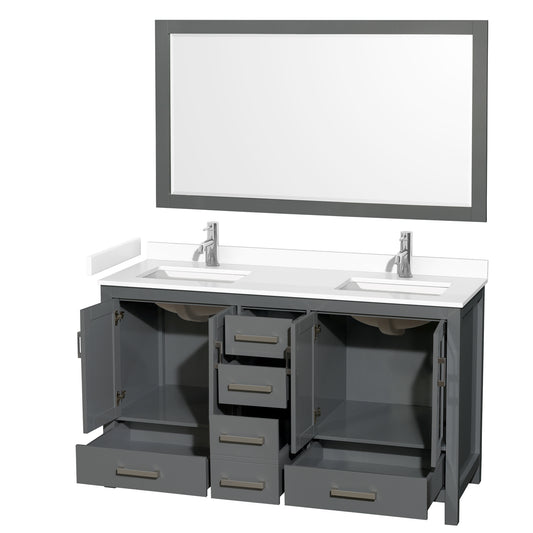 Sheffield 60" Double Vanity in Dark Gray, White Marble Top, Square 58" Mirror