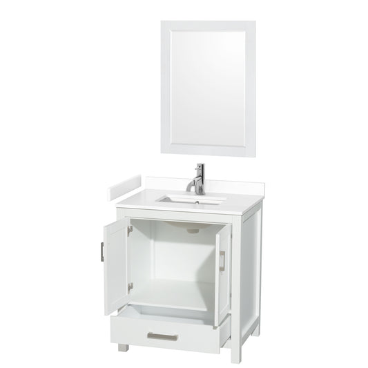 Sheffield 30" Single Vanity in White, Top, Square Sink, 24" Mirror