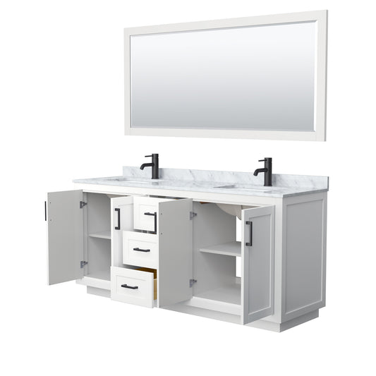 Miranda 72" Double Vanity in White, Top, Square Matte Black Trim, 70" Mirror