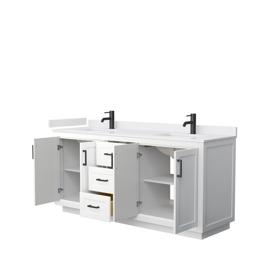 Miranda 72" Double Vanity in White, Top, Square Sinks, Matte Black Trim
