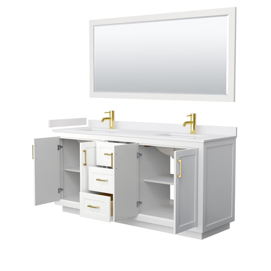 Miranda 72" Double Vanity in White, Top, Square Sinks, Brushed Gold Trim