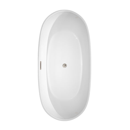 Rebecca 65" Freestanding Bathtub in White, Brushed Nickel Drain, Overflow Trim