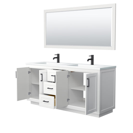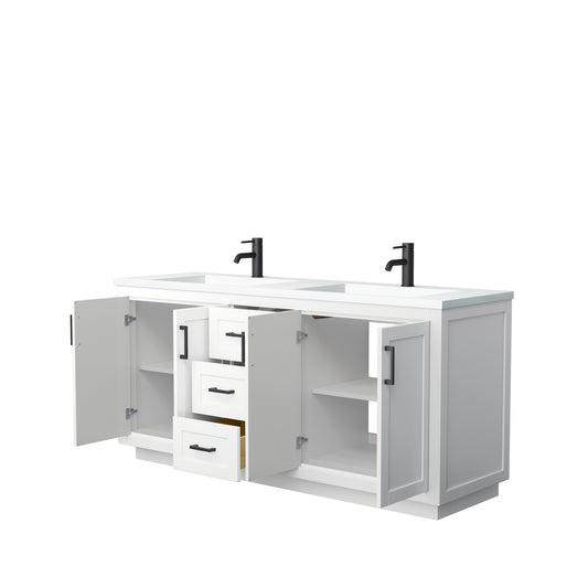 Miranda 72" Double Vanity in White, 1.25" White Top, Integrated Matte Black Trim