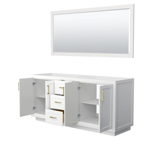 Miranda 72" Double Vanity in White, No Top, Bruished Gold Trim, 70" Mirror