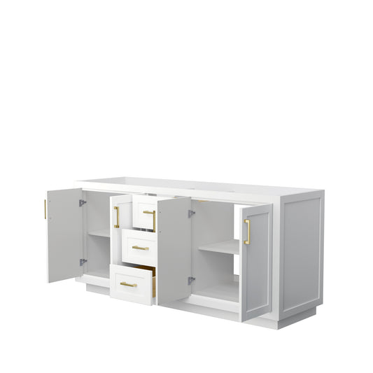 Miranda 72" Double Vanity in White, No Top, No Sink, Brushed Gold Trim