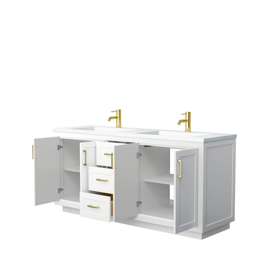 Miranda 72" Double Vanity in White, 1.25" White Top, Integrated Gold Trim