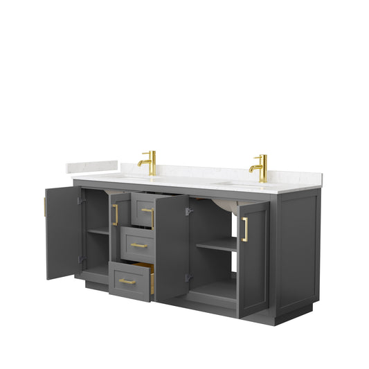 Miranda 72" Double Vanity in Dark Gray, Carrara Cultured Marble Top, Gold Trim
