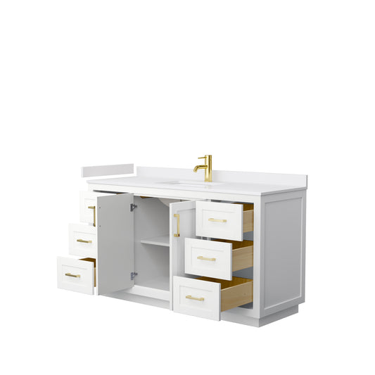 Miranda 60" Single Vanity in White, Top, Square Sink, Brushed Gold Trim