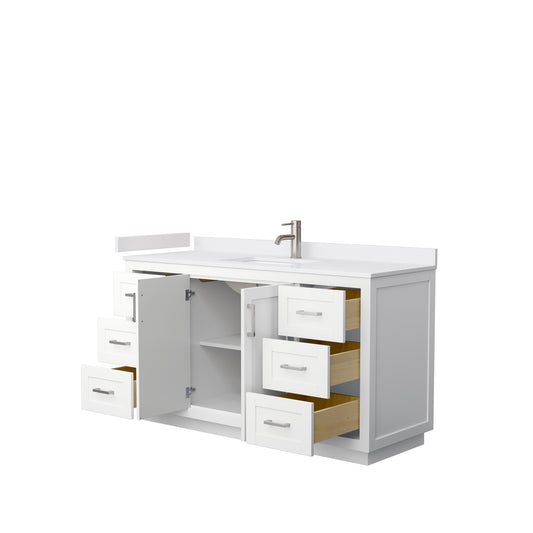 Miranda 60" Single Vanity in White, Top, Square Sink, Brushed Nickel Trim