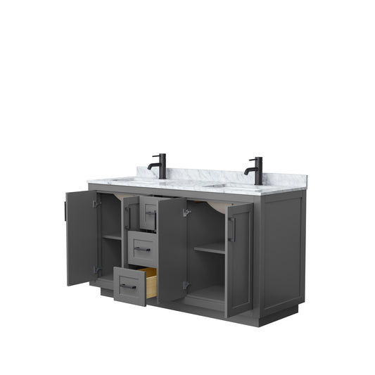 Miranda 60" Double Vanity in Dark Gray, Carrara Cultured Marble Top, Black Trim