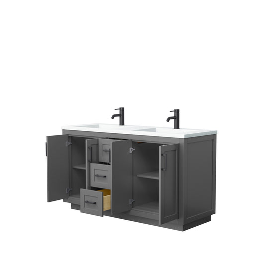 Miranda 60" Double Vanity in Dark Gray, 1.25" White Top, Integrated Black Trim