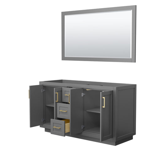 Miranda 60" Double Vanity in Dark Gray, No Top, Bruished Gold Trim, 58" Mirror