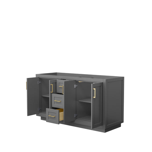 Miranda 60" Double Vanity in Dark Gray, No Top, No Sink, Brushed Gold Trim