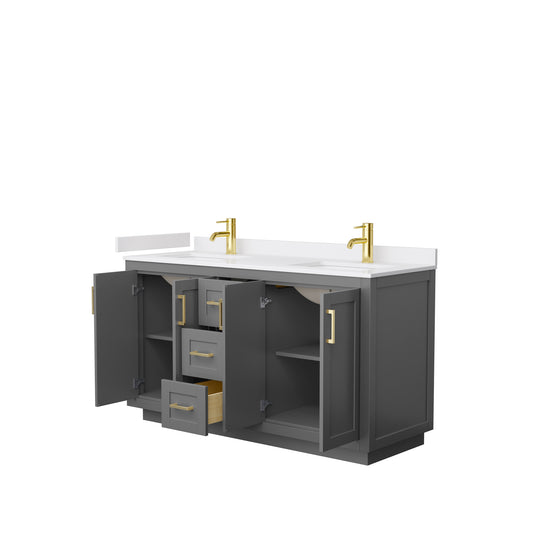 Miranda 60" Double Vanity in Dark Gray, White Cultured Marble Top, Gold Trim