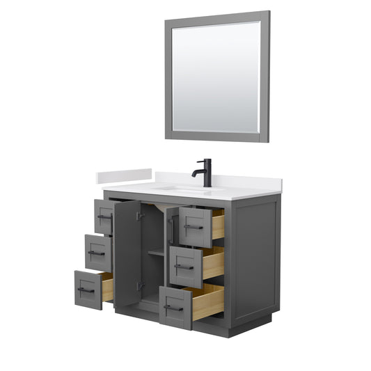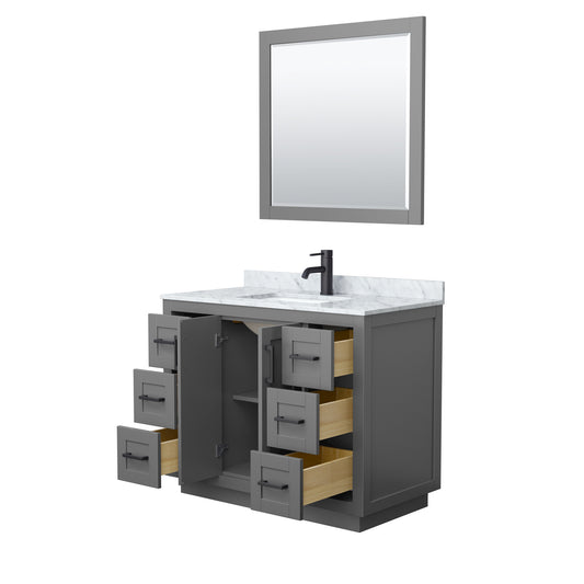 Miranda 42" Single Vanity in Dark Gray, Top, Square Matte Black Trim, 34" Mirror