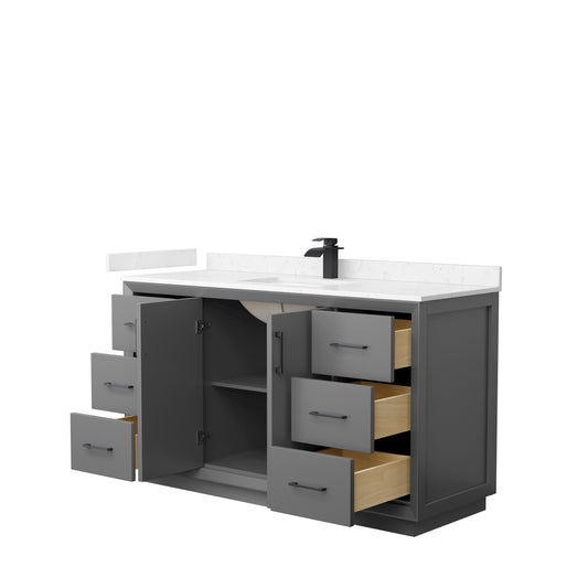Strada 60" Single Vanity in Gray, White Marble Top, Sink, Black Trim