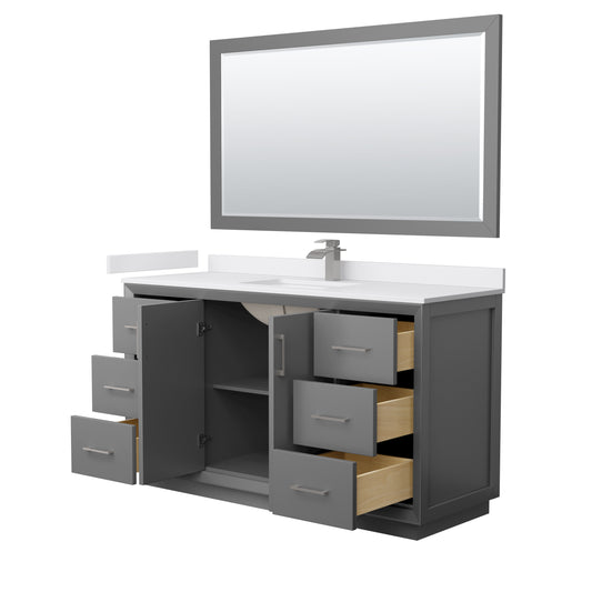 Strada 60" Gray Single Vanity, White Marble Top, Sink, Nickel Trim, 58" Mirror