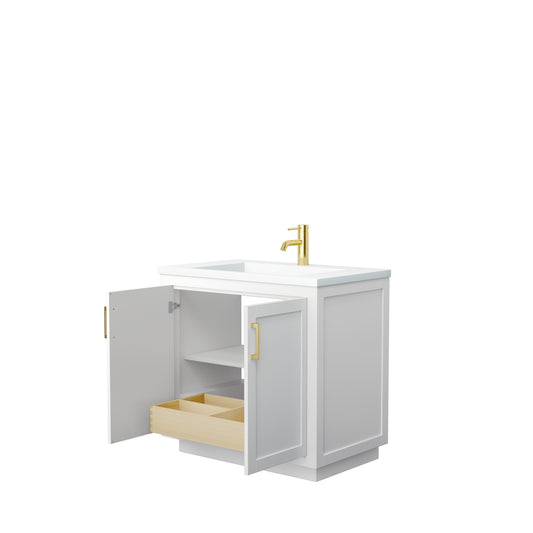 Miranda 36" White Single Vanity, 1.25" White Top, Integrated Brushed Gold Trim