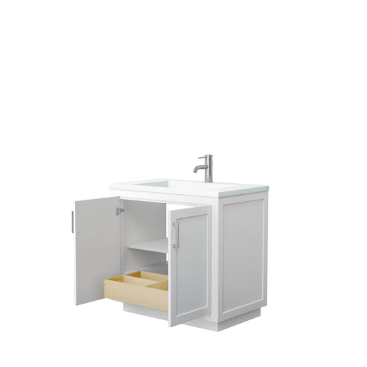 Miranda 36" White Single Vanity, 1.25" White Top, Integrated Brushed Nickel Trim