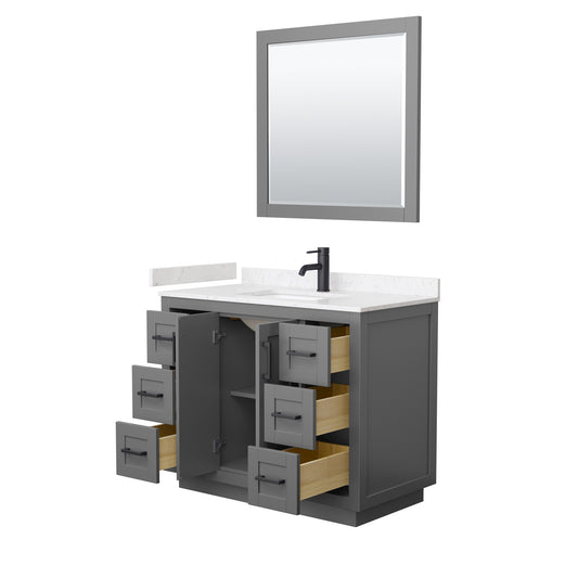 Miranda 42" Dark Gray Single Vanity, Carrara Marble Top, Black Trim, 34" Mirror