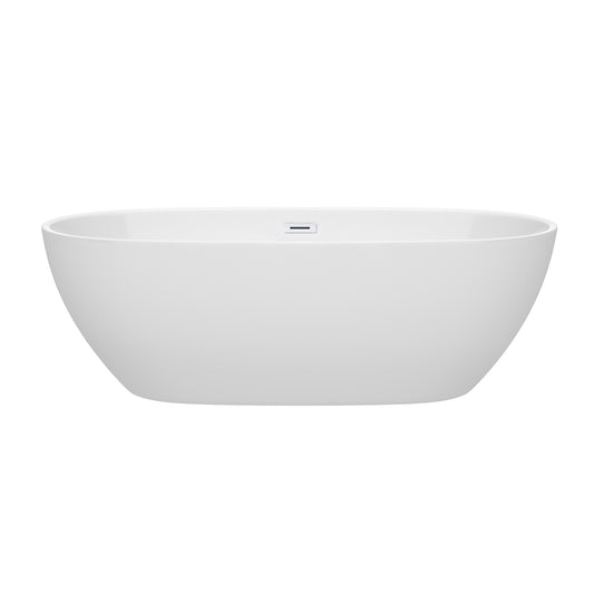 Juno 71" Freestanding Bathtub in White, Polished Chrome Drain, Overflow Trim