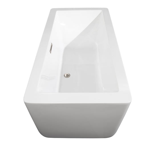Laura 59" Freestanding Bathtub in White, Brushed Nickel Drain, Overflow Trim